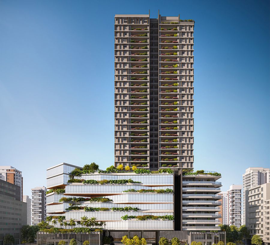 Com uma presença marcante no horizonte urbano, a imponente torre de 34 andares reflete um projeto concebido para um perfil seletivo. A exclusividade é garantida pela configuração de apenas duas unidades por pavimento, assegurando o máximo de privacidade e um fluxo residencial harmonioso.